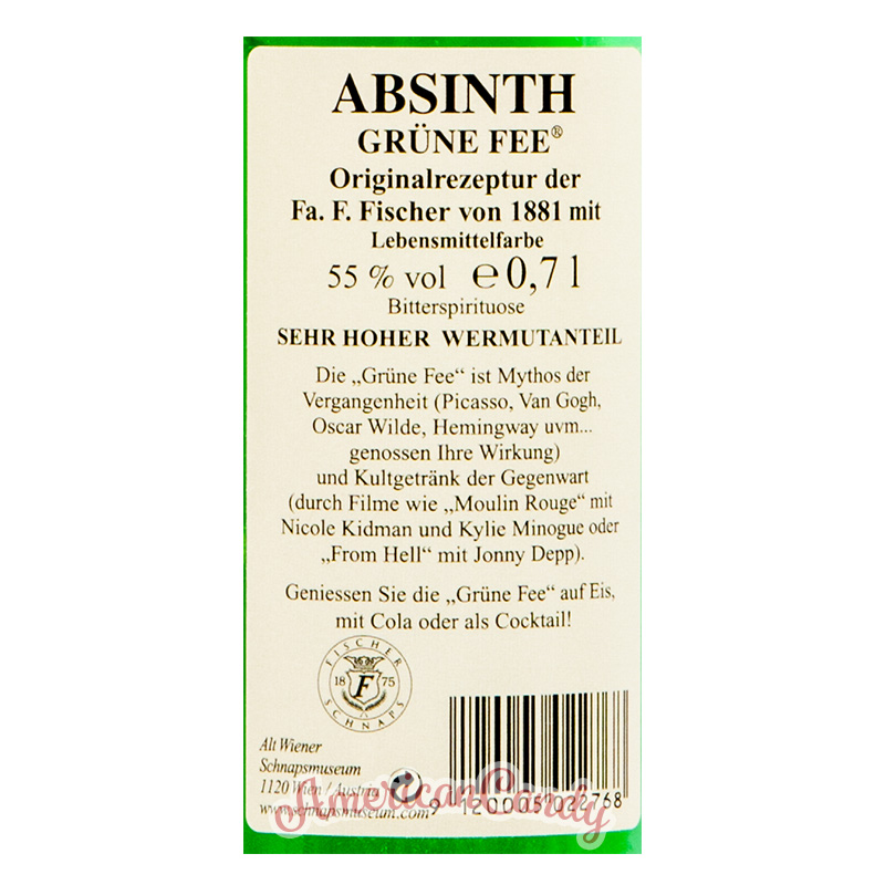 Absinth GRÜNE FEE 50% alc. Vol. 700ml: Der wiedererwachte Kult aus Österreich in der attraktiven 700 ml Bar-Flasche mit besonders hohem Wermutanteil und 50% alc.Vol., es tritt eine opalgrüne Trübung mit Wasser bzw. Eis ein, auch mit Cola mischbarInhalt: 700 ml Ab 18 Jahren