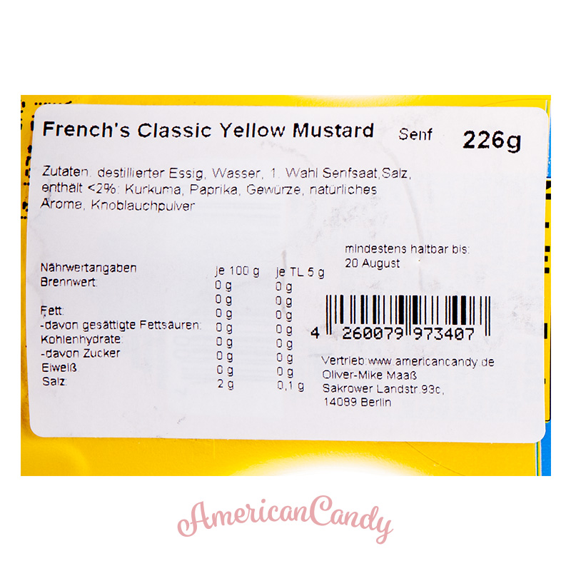 French's Classic Yellow Mustard 226g: