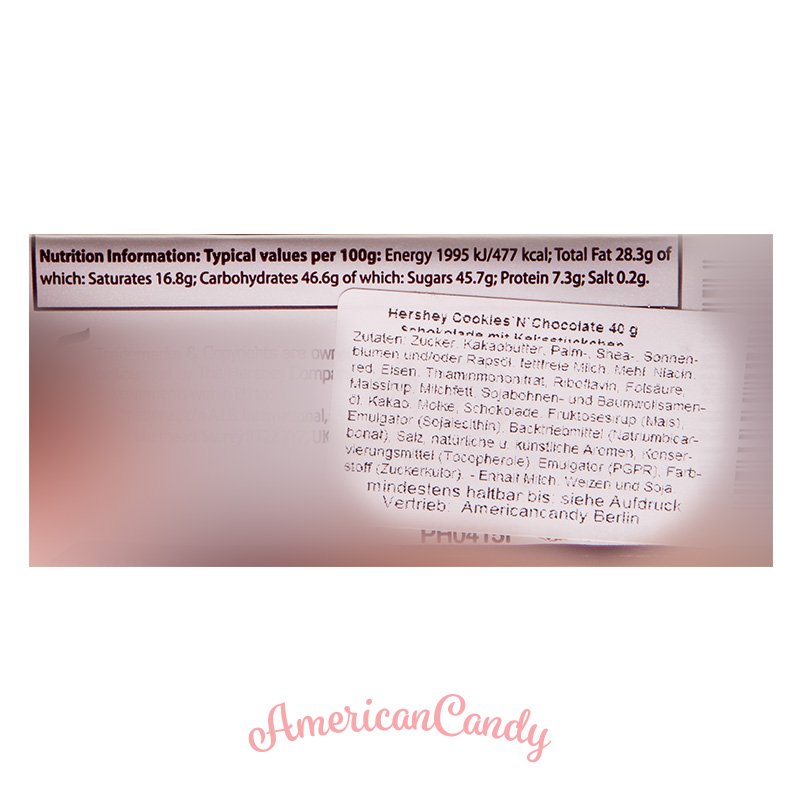Sehr leckere Hershey's Schololadentäfelchen, in denen leckere Hershey Keks-Stückchen enthalten sind.