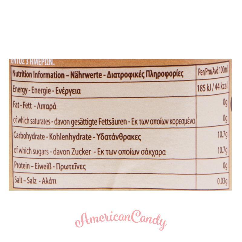 Wasser, Zucker, Apfel-,Birnen-, Traubensaftkonzentrat, Säurungsmittel Zitronensäure, Aroma