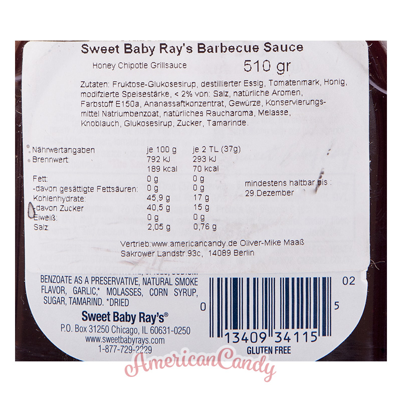 Sweet Baby Ray's Gourmet Barbecue Sauce Honey BBQ 510g: Gourmet BBQ Sauce aus den USA, auch perfekt bei der direkten Zubereitung in den letzten 10-15 Minuten auf dem Grill zu verwenden, das Produkt hat den "BESTE TASTE - AWARD" für den besten Geschmack erhalten, hier in der Geschmacksvariante "Honey BBQ" - ein tolles Geschmacks-Erlebnis! Inhalt: 510 g